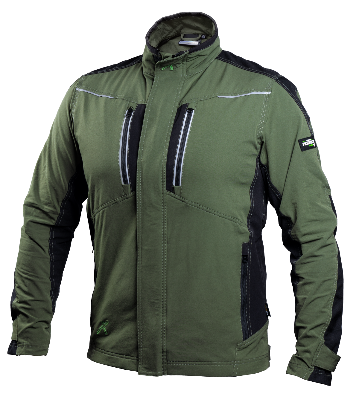 Materiał o właściwościach softshellu zapewnia elastyczność i szybkie schnięcie, chroni przed wiatrem i dopasowuje się do sylwetki, nie ograniczając ruchów. Dzięki dodatkowej regulacji w pasie oraz rękawom z wewnętrznym mankietem i otworem na kciuk, bluza gwarantuje komfort użytkowania podczas wielogodzinnej pracy.