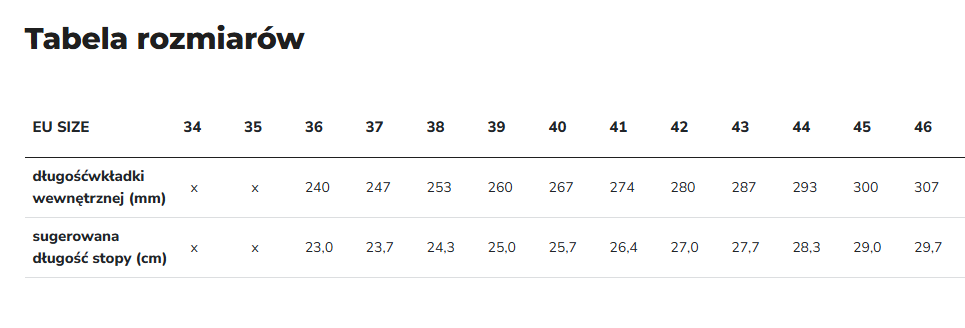 Podeszwa zapewnia wygodę a urzeźbienie chroni przed poślizgiem. Dopasowanie za pomocą sznurówek, pasek na pięcie umożliwiający szybkie zakładanie.