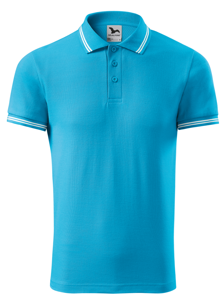 • Koszulka polo MALFINI URBAN turkus bawełniana z paskami ozdobnymi