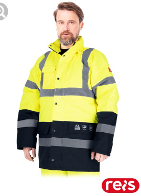 • Nowoczesna, ocieplana męska kurtka ostrzegawcza typu parka. Posiada taśmy odblaskowe dookoła barków i rękawów oraz dookoła tułowia.