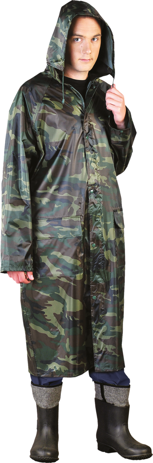 Płaszcz przeciwdeszczowy z kapturem tkany moro PPNP