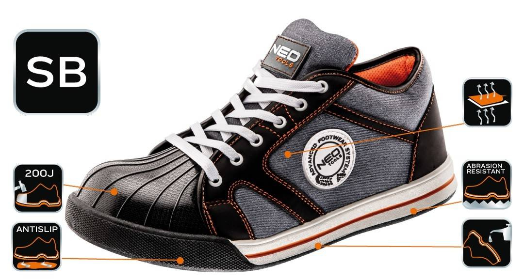 Buty Półbuty robocze firmy NEO TOOLS ze stalowym podnoskiem SB - młodzieżowy design.