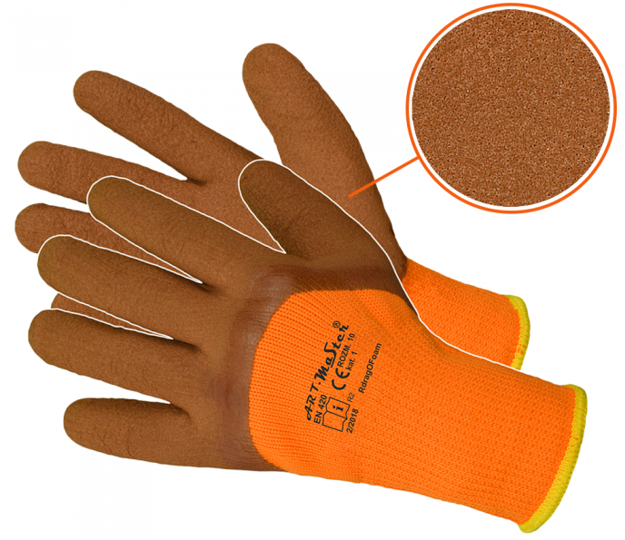 Rękawice ochronne, dziane, ocieplane, powlekane spienionym lateksem w kolorze brązowym RDRAG O FOAM