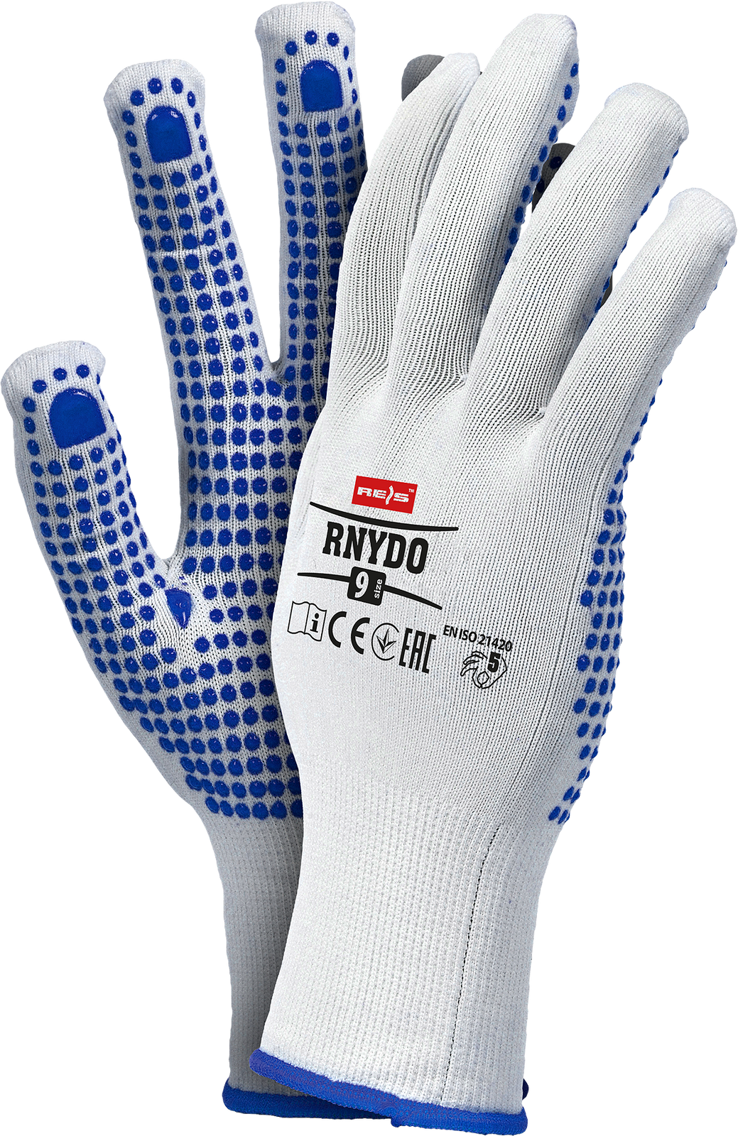 - Rękawice ochronne dzianina 100% nylon. Rękawice są jednostronne z nakropieniem PCV na części chwytnej.