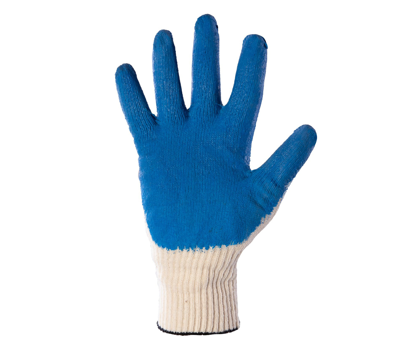 Rękawice robocze bawełniano-poliestrowe powlekane szorstkowanym lateksem w kolorze niebieskim