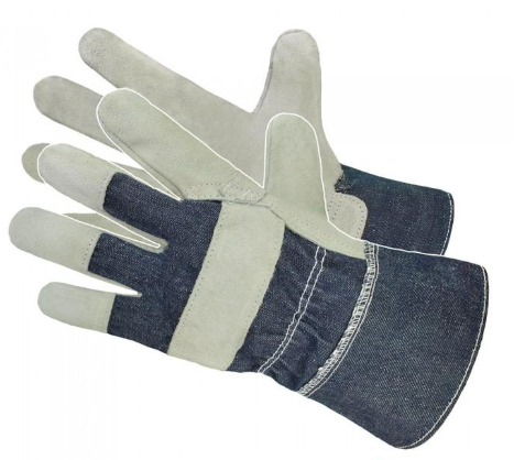 - Rękawice ochronne pięciopalcowe wzmacniane skórą dwoiną bydlęcą