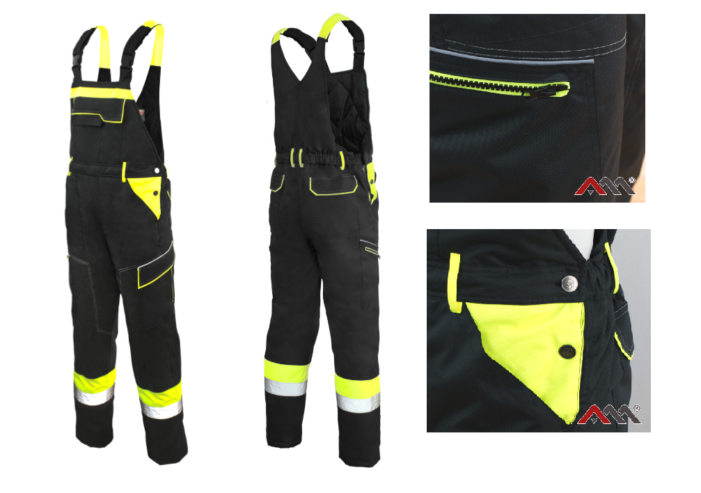 Spodnie Ogrodniczki Ocieplane Uniwersal czarno/zółte