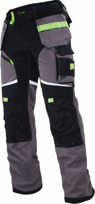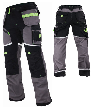Komfortowy krój i zapięcia Spodnie są wykonane w nowoczesnym i wygodnym kroju. Podwyższony pas w tylnej części zapobiega podwiewaniu, a szerokie mocne szlufki pozwalają utrzymać wygodnie pasek. Zwężane na dole nogawki nie podwijają się pod buty. W obrębie rozporka i kieszeni monterskich zastosowano trwały metalowy zamek YKK. Można go łatwo rozpinać nawet w rękawicy roboczej i bez obaw o zniszczenie drobinkami piasku i innymi zanieczyszczeniami.