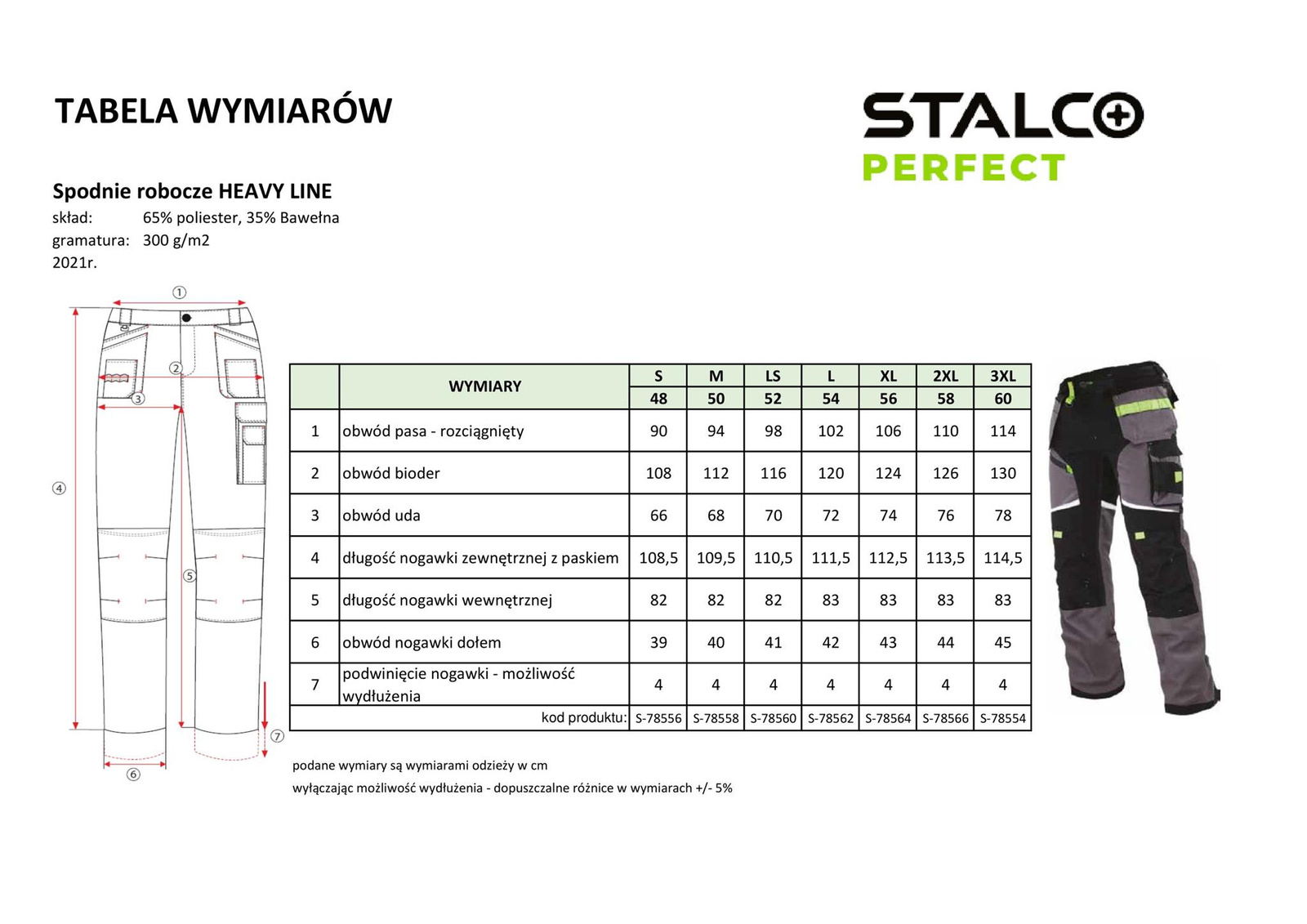 - Spodnie robocze do pasa HEAVY LINE STALCO PERFECT to element profesjonalnej odzieży roboczej. Spodnie chronią przed skaleczeniem i zadrapaniami, a także czynnikami atmosferycznymi.