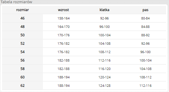 - gumka w pasie w tylnej partii zwiększa swobodę ruchów oraz umożliwia lepsze dopasowanie