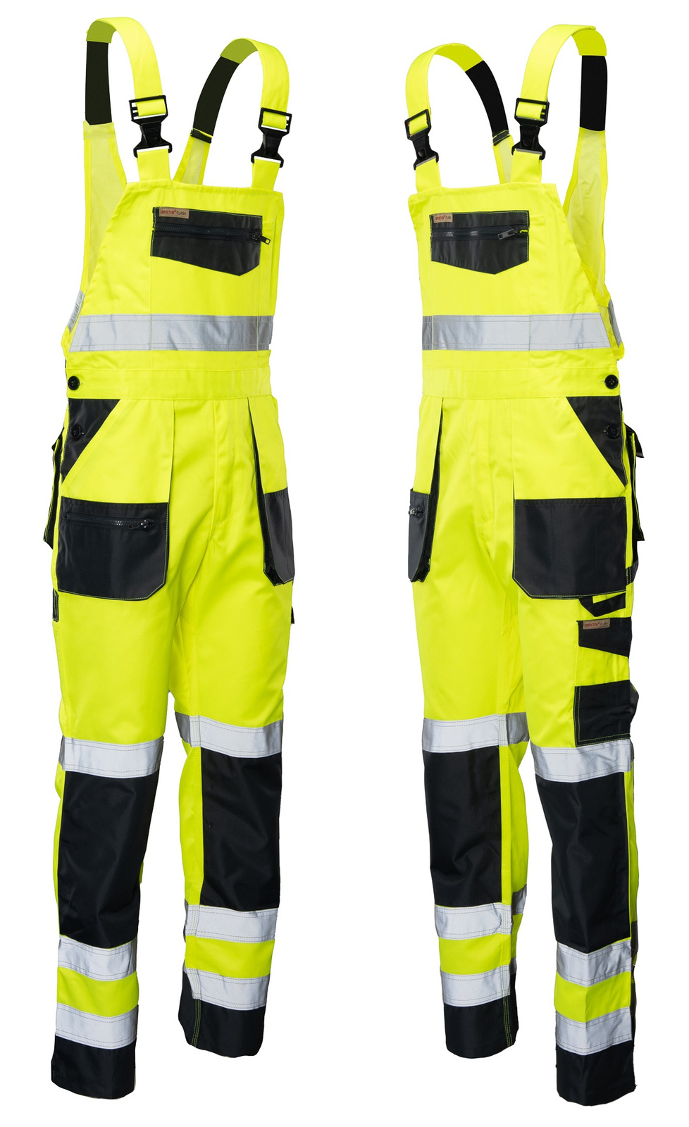 Spodnie robocze ogrodniczki odblask BRIXTON FLASH żółto-granatowe