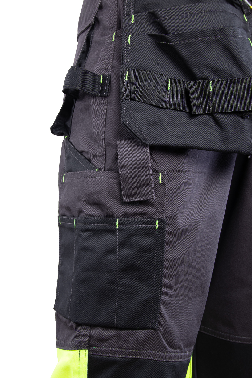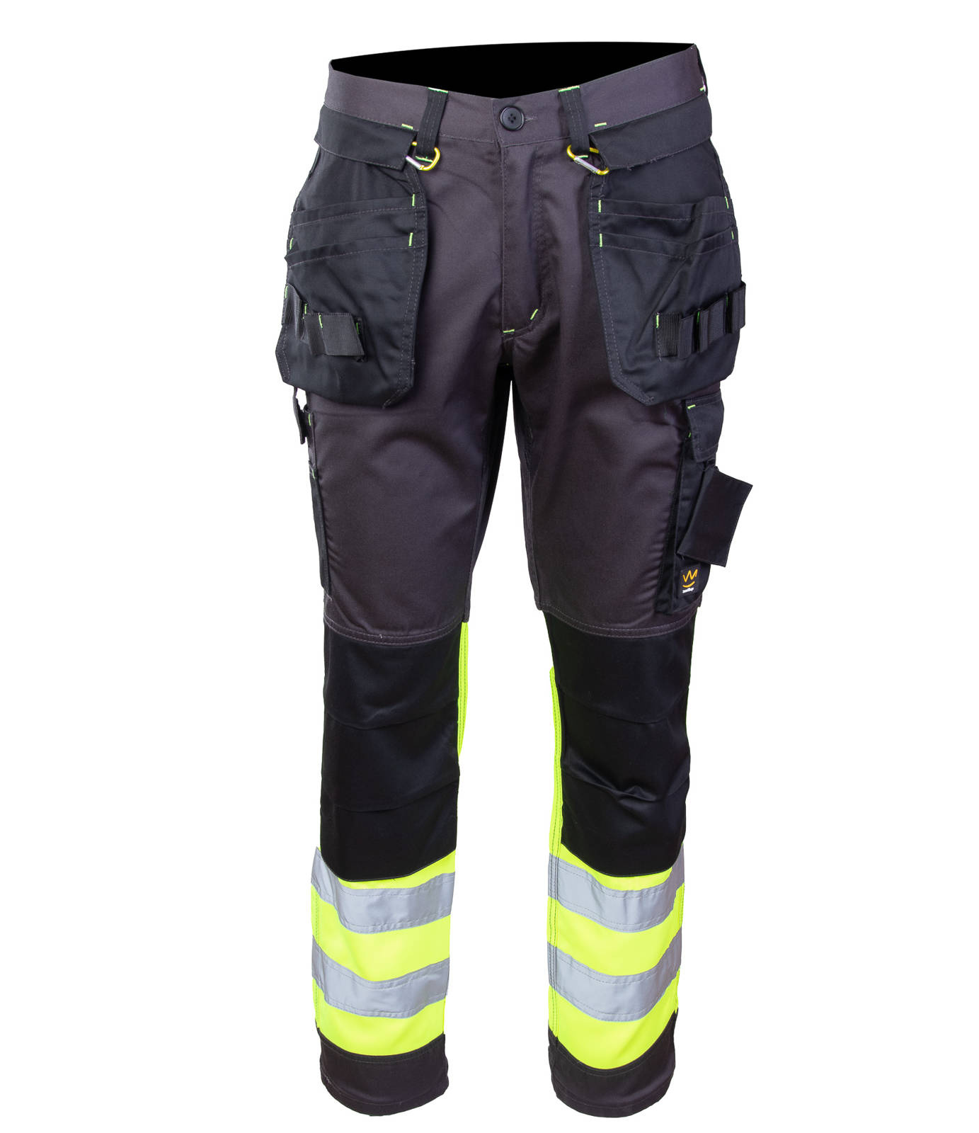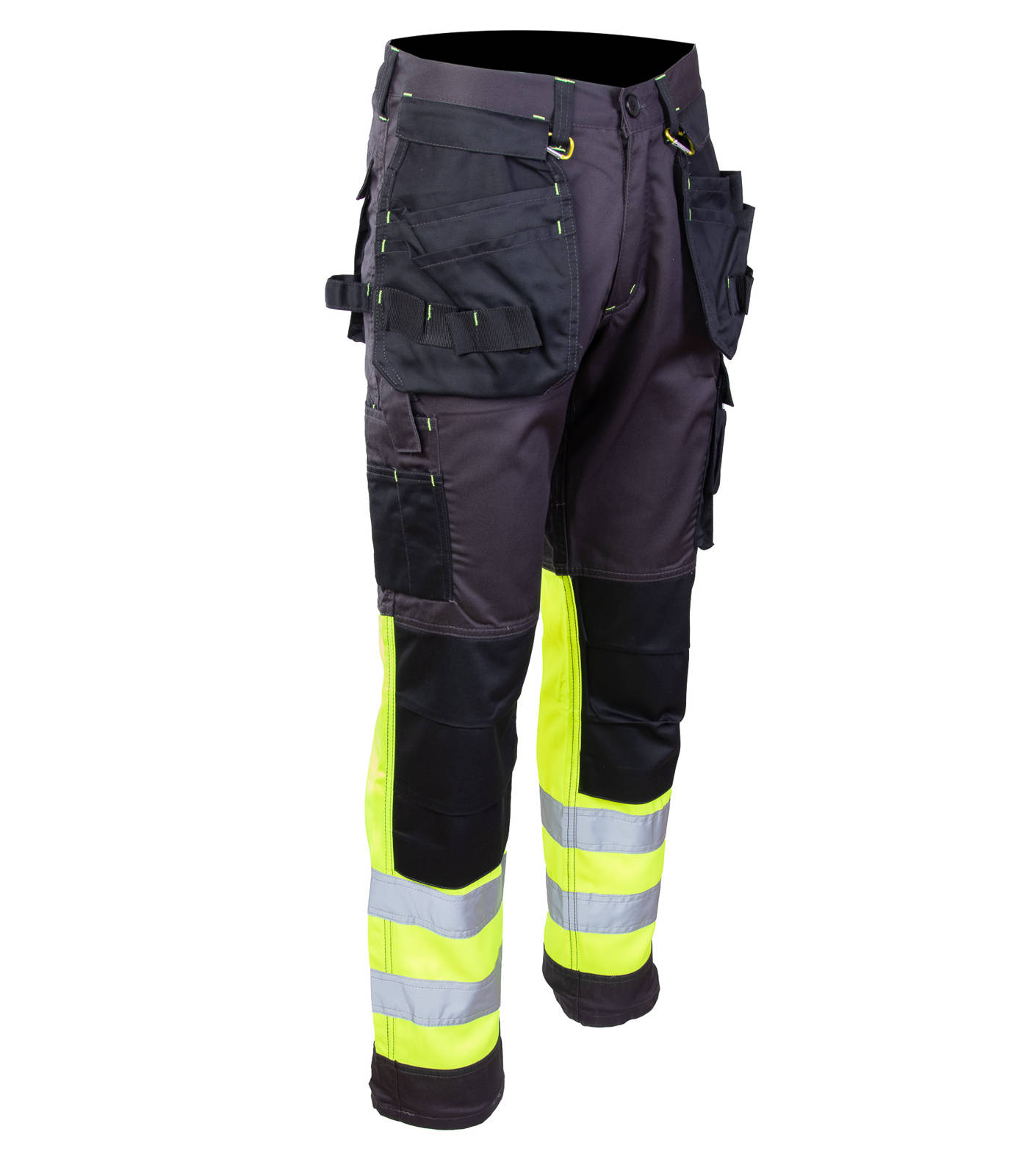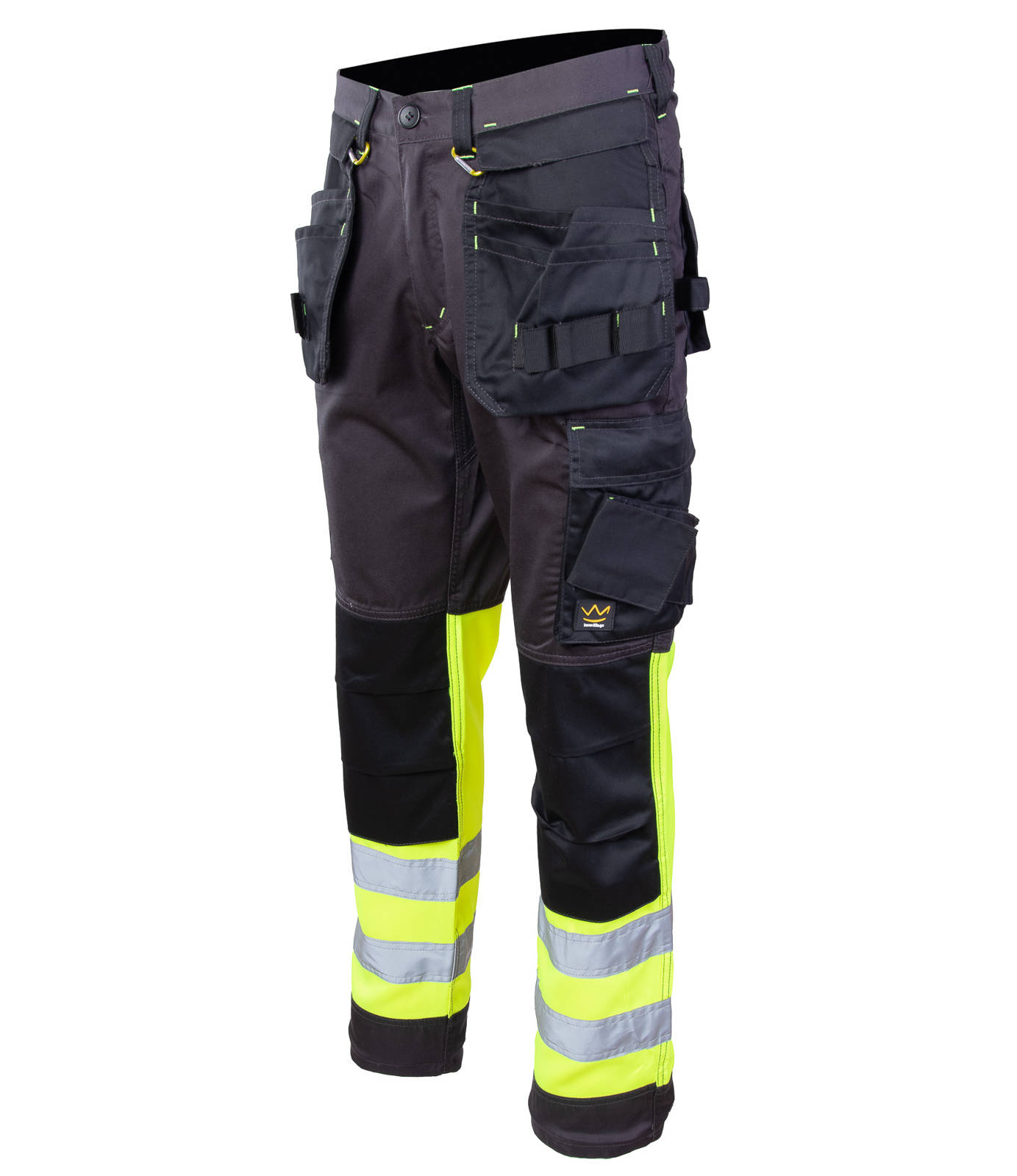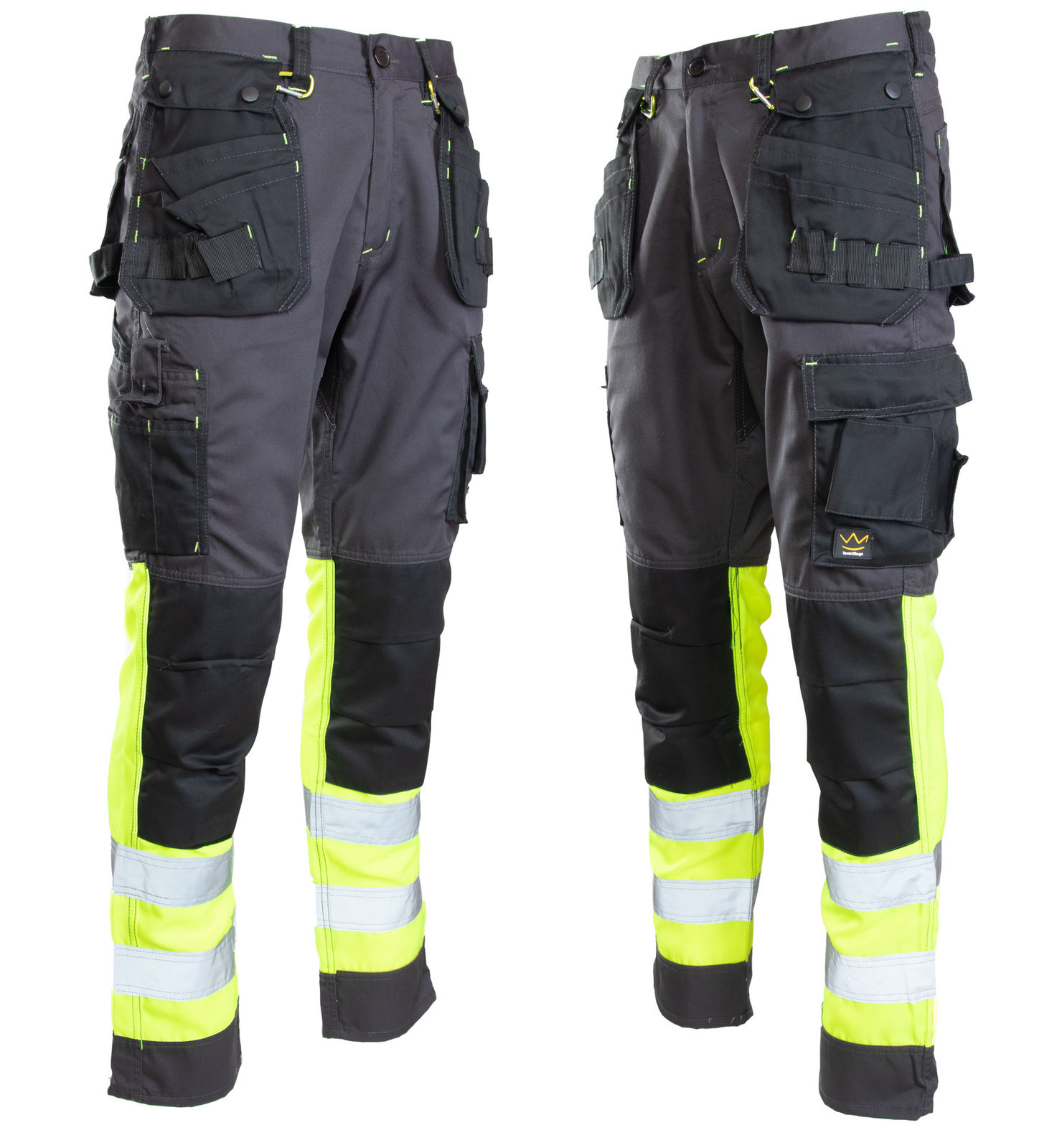 Spodnie robocze ostrzegawcze do pasa odblaskowe fluorescencyjne pasy dużo kieszeni potrójne szwy Polstar SEVEN KINGS FLASH A9SP
