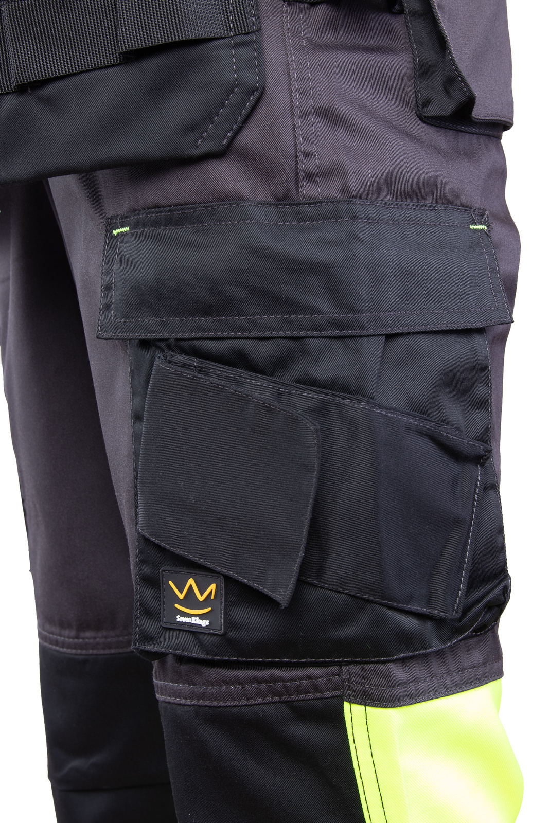- Ostrzegawcze spodnie robocze do pasa SEVEN KINGS FLASH zapewniają najwyższą klasę odblasków o właściwościach fluorescencyjnych. Wykonane w dużej mierze z czarnego materiału spodnie, dłużej pozostaną czyste, nadając estetykę pracy.