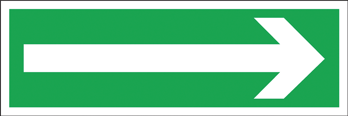 - Znak ewakuacyjny „Kierunek do wyjścia drogi ewakuacji”.- format znaku D w rozmiarze 100x300- wykonany nadrukiem fotoluminescencyjnym