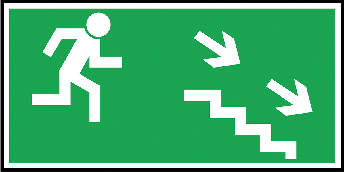 Znak ewakuacyjny „Kierunek do wyjścia drogi ewakuacji schodami w dół w prawo”