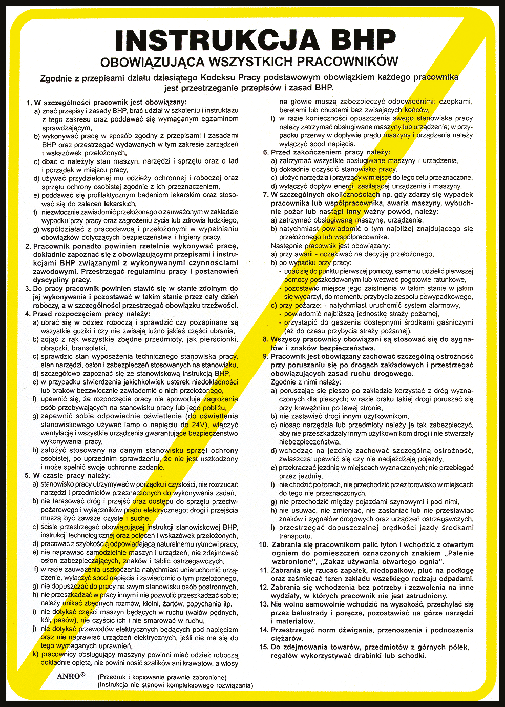 Znak tablica bhp "INSTRUKCJA BHP OBOWIĄZUJĄCA WSZYSTKICH PRACOWNIKÓW"