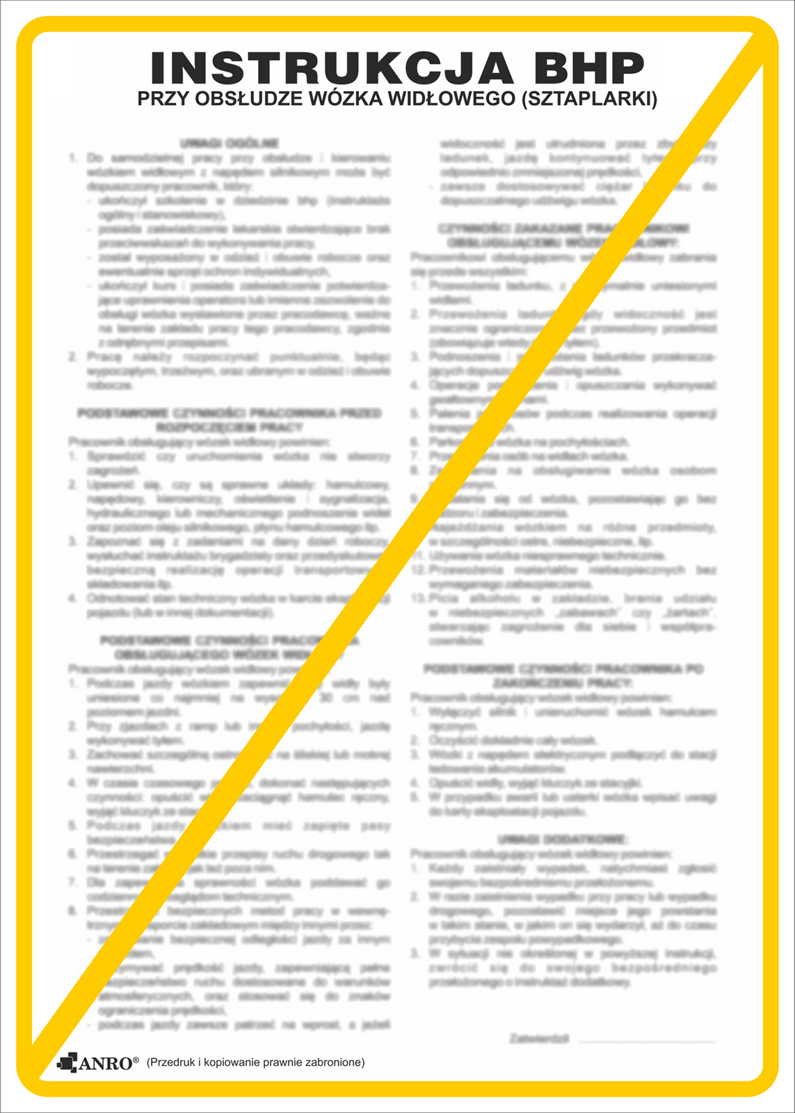 - Znak bhp "Instrukcja przy obsłudze wózka widłowego"